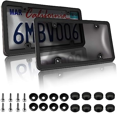 OKLPF Tinted License Plate Protector Cover with Black License Plate Frames Holder Combo Set,Smoked Bubble Design Covers License Plate Hider Shield Screws Included, 2 Pack, Black