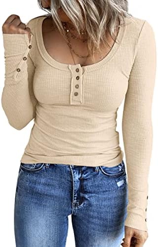 Kissfix Women’s Long Sleeve Shirts Casual Fall Henley Top Button Down Blouses Basic Ribbed Knit T Shirts