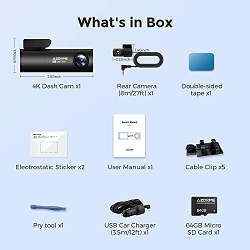 【Compact & Super Easy to Install】With slim and compact design (Size: 3.8×1.7×1.4in), the front and rear dash cam takes up tiny space in your car, which won’t obstruct your vision while driving. And simple installation and set up with excellent instructions included, no need to worry even for a first time user.