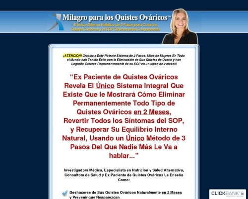 Product Name: Milagro para los Quistes Ováricos(TM): Ovarian Miracle(TM) In Spanish! Click here to get Milagro para los Quistes Ováricos(TM): Ovarian Miracle(TM) In Spanish! at discounted price while it’s still