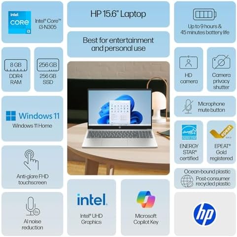 Display: 15.6 in diagonal, FHD (1920 x 1080), touchscreen, IPS, micro-edge, BrightView, 250 nits, 45% NTSC