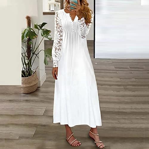 Women’s Midi Dresses Lace Splice Long Sleeve Dress Summer Party Button V Neck Dress Printed Floral, S-3XL